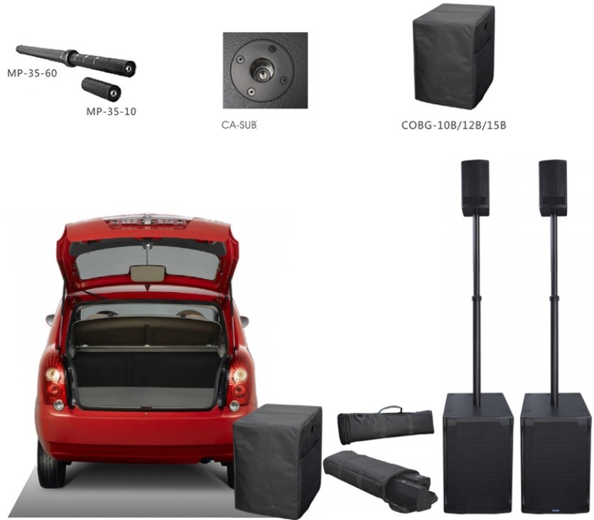 Transducer:1 X 12"(300 mm) ferrite woofer Frequency Response:45Hz-180Hz Rated Power RMS:350W Sensitivity:95dB Maximum SPL:124dB Nominal Impedance:8Ω Power Output:LF:600W + HF:2X 300W (8Ω) DSP Connection:2XMIC/ line, +2XRCA +1xBluetooth input,2 X Speakon output Dimensions(mm):358X530X485(W X H X D) Net Weight(kg):27.9