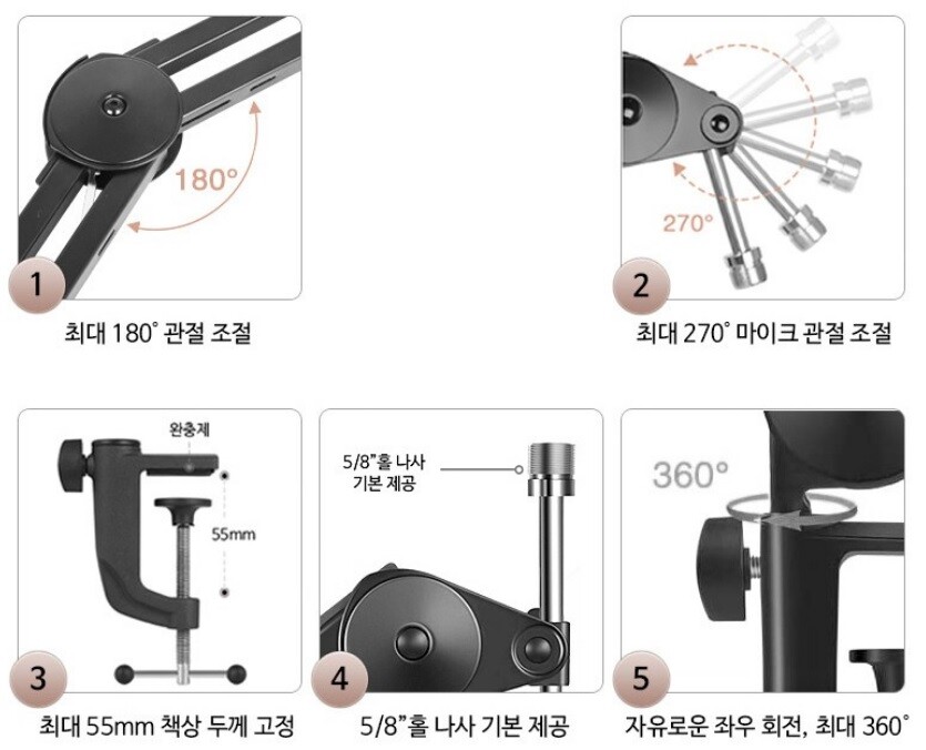 탁상용 마이크 스텐드 .HMH 마이크 자바라 스텐드 중량감있는 마이크